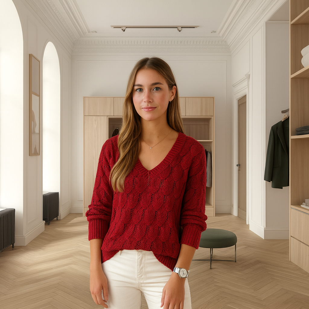Hansel damepullover med V-udskæring indkapsler ubesværet elegance og tidløs komfort. Med sin smigrende V-udskæring og løse pasform tilbyder denne pullover en perfekt blanding af stil og hygge. Uanset om det er til hverdag, på kontoret eller til afslappede weekendudflugter – Hansel™ er altid det rigtige valg.